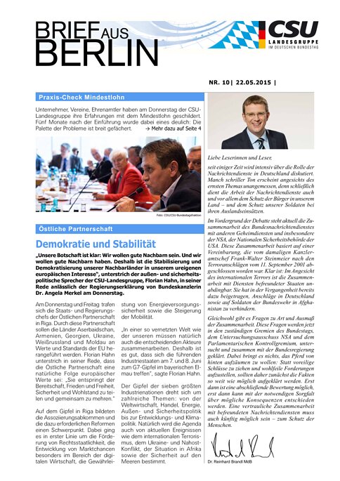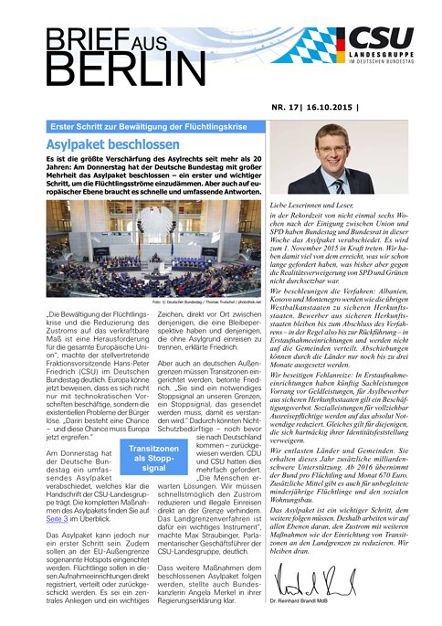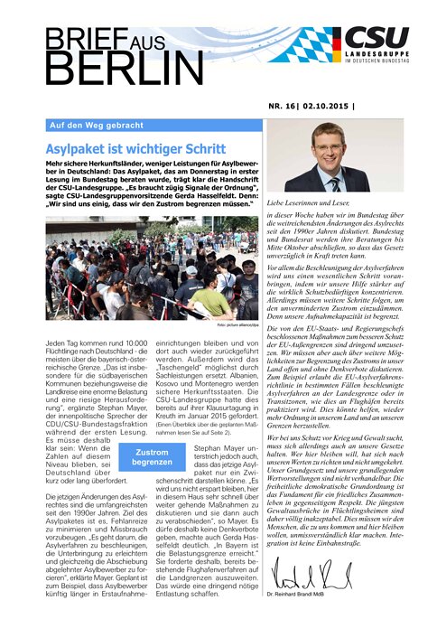 1. Auf den Weg gebracht - Asylpaket ist wichtiger Schritt 2. Auf Einladung der Landesgruppe - Nachwuchskräfte der CSU-Akademie zu Gast in Berlin 3. 25 Jahre Deutsche Einheit - ...