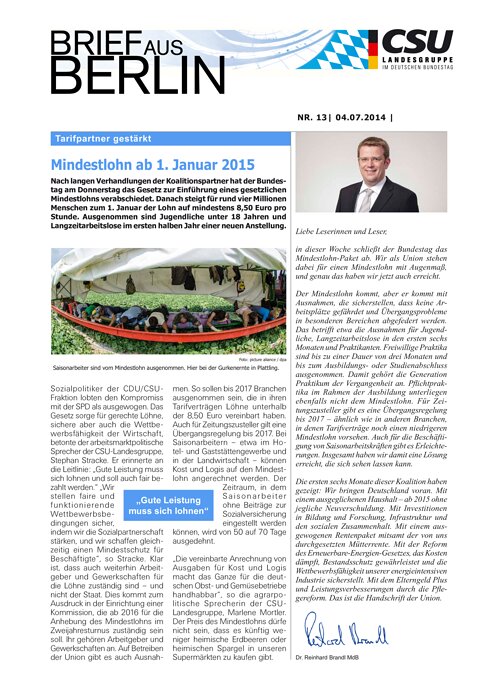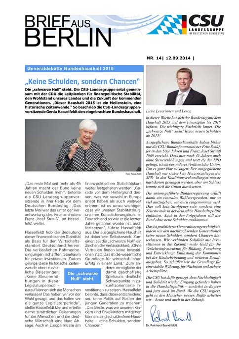 Brief aus Berlin, Nr. 14, 12.09.2014