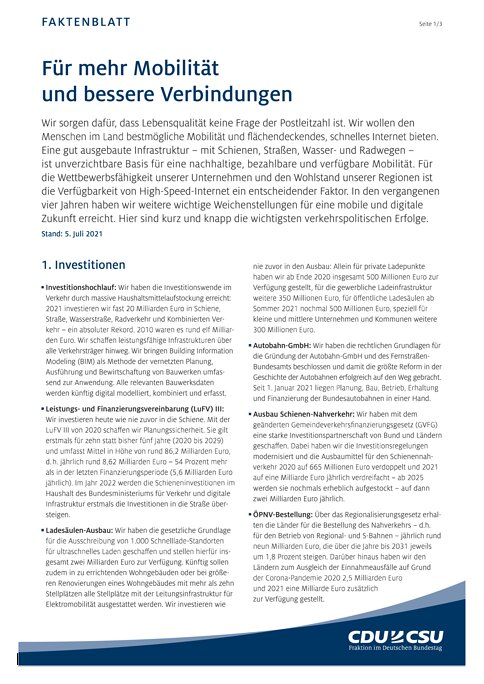 Faktenblatt - Für mehr Mobilität und bessere Verbindungen