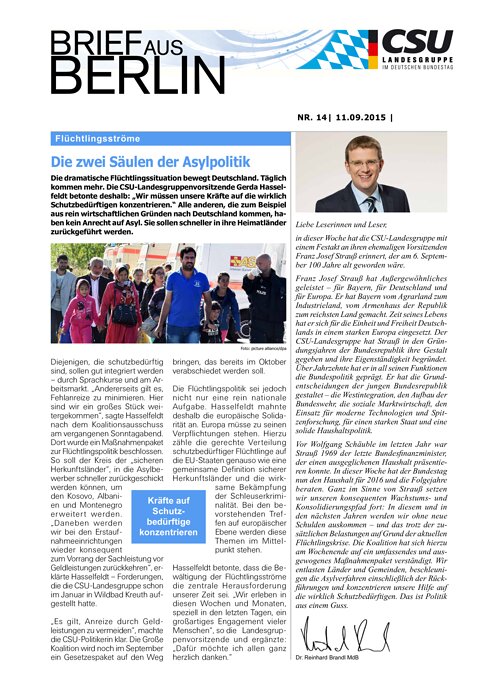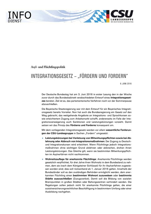 Informationen zum Asylpaket II finden Sie im aktuellen Infodienst der CSU-Landesgruppe