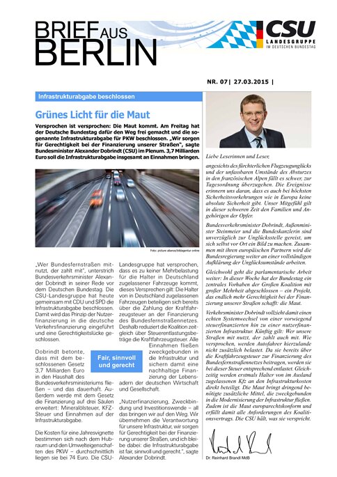1. Infrastrukturabgabe beschlossen: Grünes Licht für die Maut 2. Flug 4U9525: In tiefer Trauer 3. Bundestags-ABC: Was ist eigentlich ... ein Ausschuss? 4. Assoziierungsabkommen mit Ukraine, Moldau, Georgien: ...