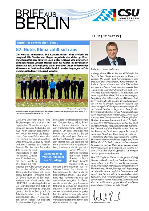 1. Gipfel im bayerischen Elmau: G7 - Gutes Klima zahlt sich aus 2. Entlastung für die Wirtschaft: Weniger Bürokratie, weniger Belastung 3. Herzlichen Glückwunsch!: Der „Brückenbauer“ wird ...