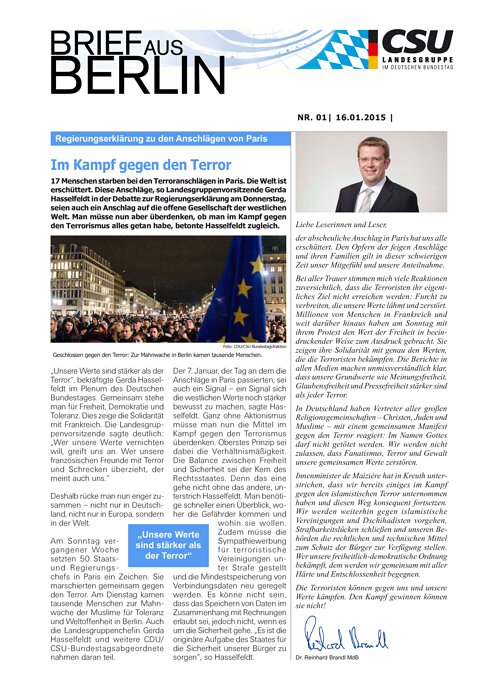 1. Regierungserklärung zu den Anschlägen von Paris - Im Kampf gegen den Terror 2. Bundeshaushalt 2014 - Historischer Erfolg 3. Bundestags-ABC -Was ist eine ... Kernzeitdebatte? 4. Nationaler Bildungsbericht ...
