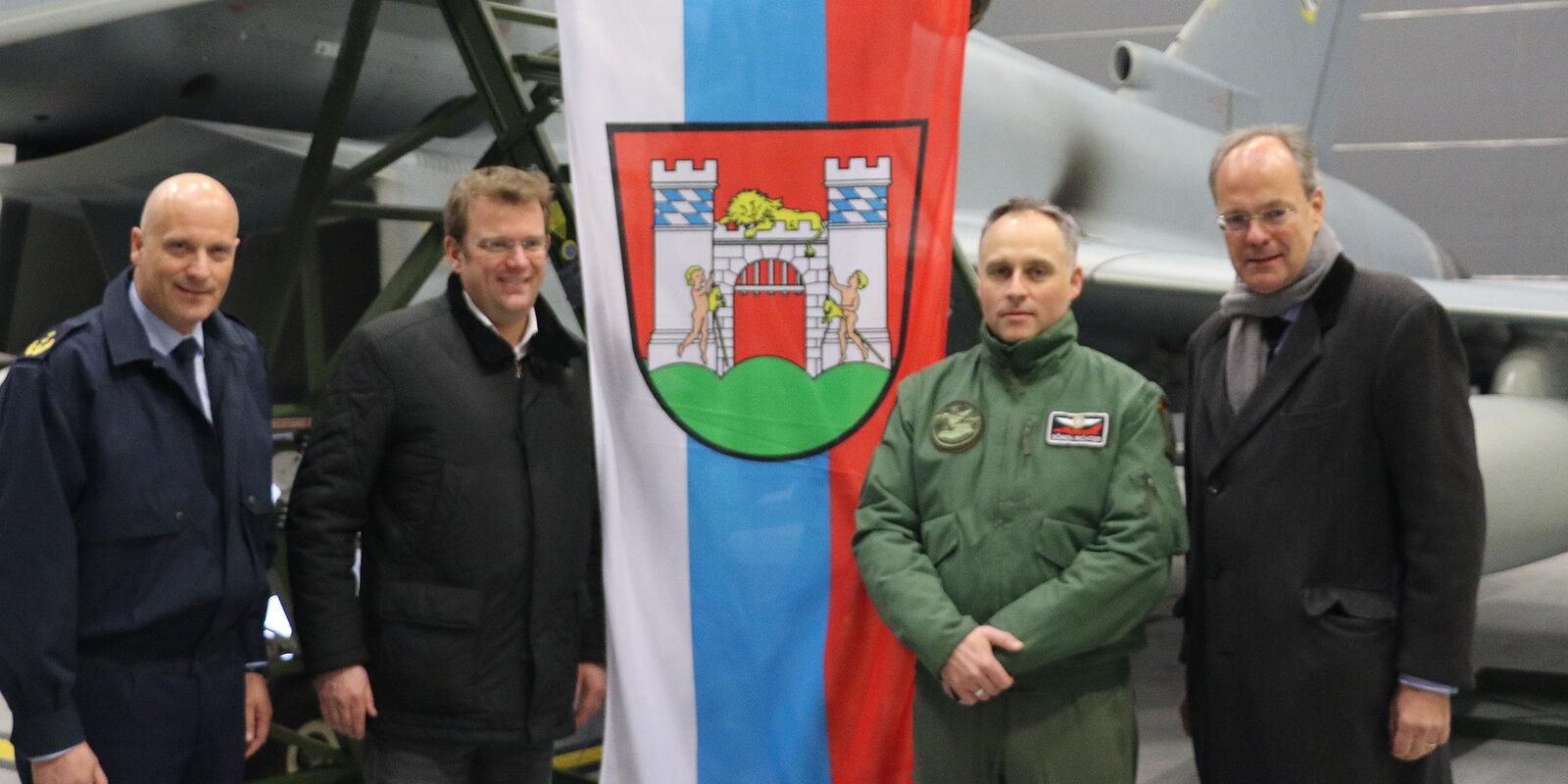 Dieses Jahr hatte Dr. Brandl außerdem die zwei Neuburger Pfarrer Herbert Kohler und Steffen Schiller mit dabei, sowie als Gastgeschenk eine Fahne der Großen Kreisstadt Neuburg an der Donau.