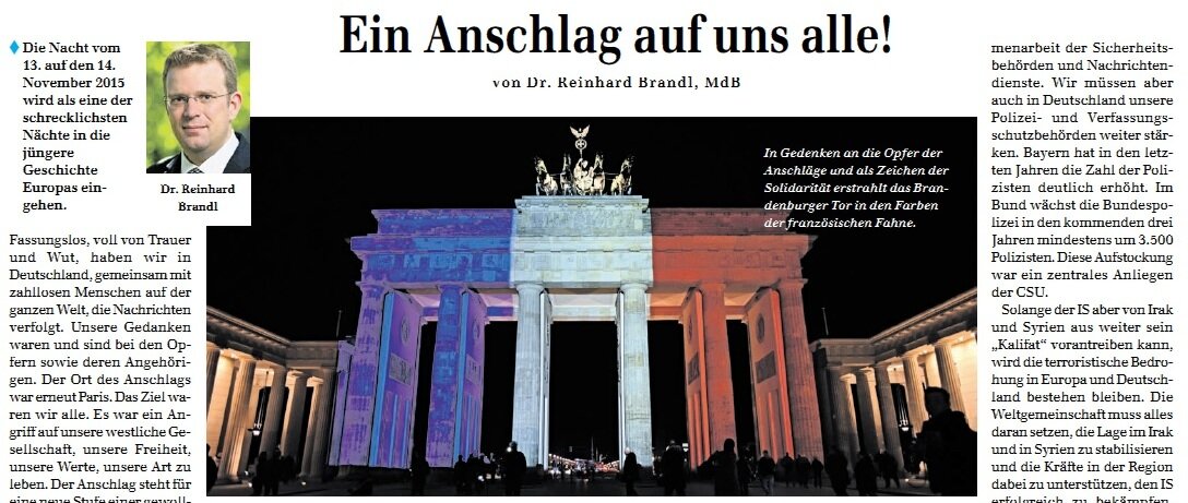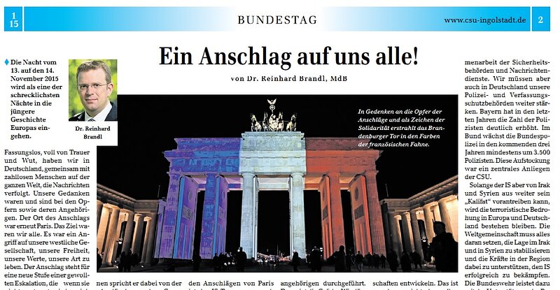 Beitrag von Reinhard Brandl für die Ingolstädter Information in der Ausgabe vom 28. November 2015 zu den Anschlägen in Paris in der Nacht vom 13. auf den 14. November 2015.