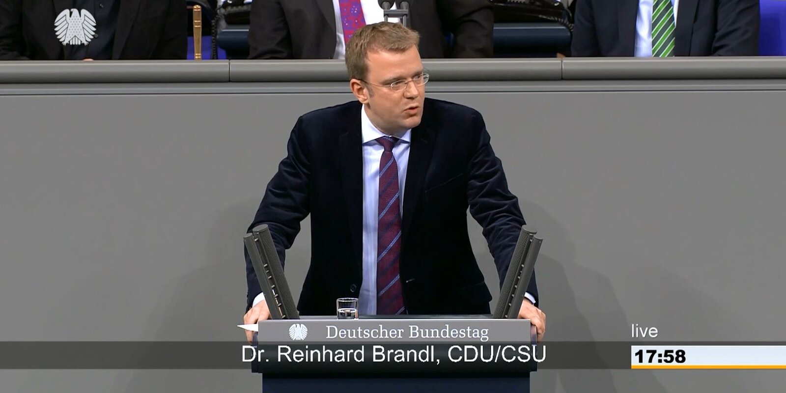 Dr. Reinhard Brandl (CSU) spricht am 21. November 2017 im Deutschen Bundestag zum Antrag der Fraktion der AfD zur Einhaltung des Verfassungs- und EU-Vertragsrechts bei der Euro-Stabilisierung.