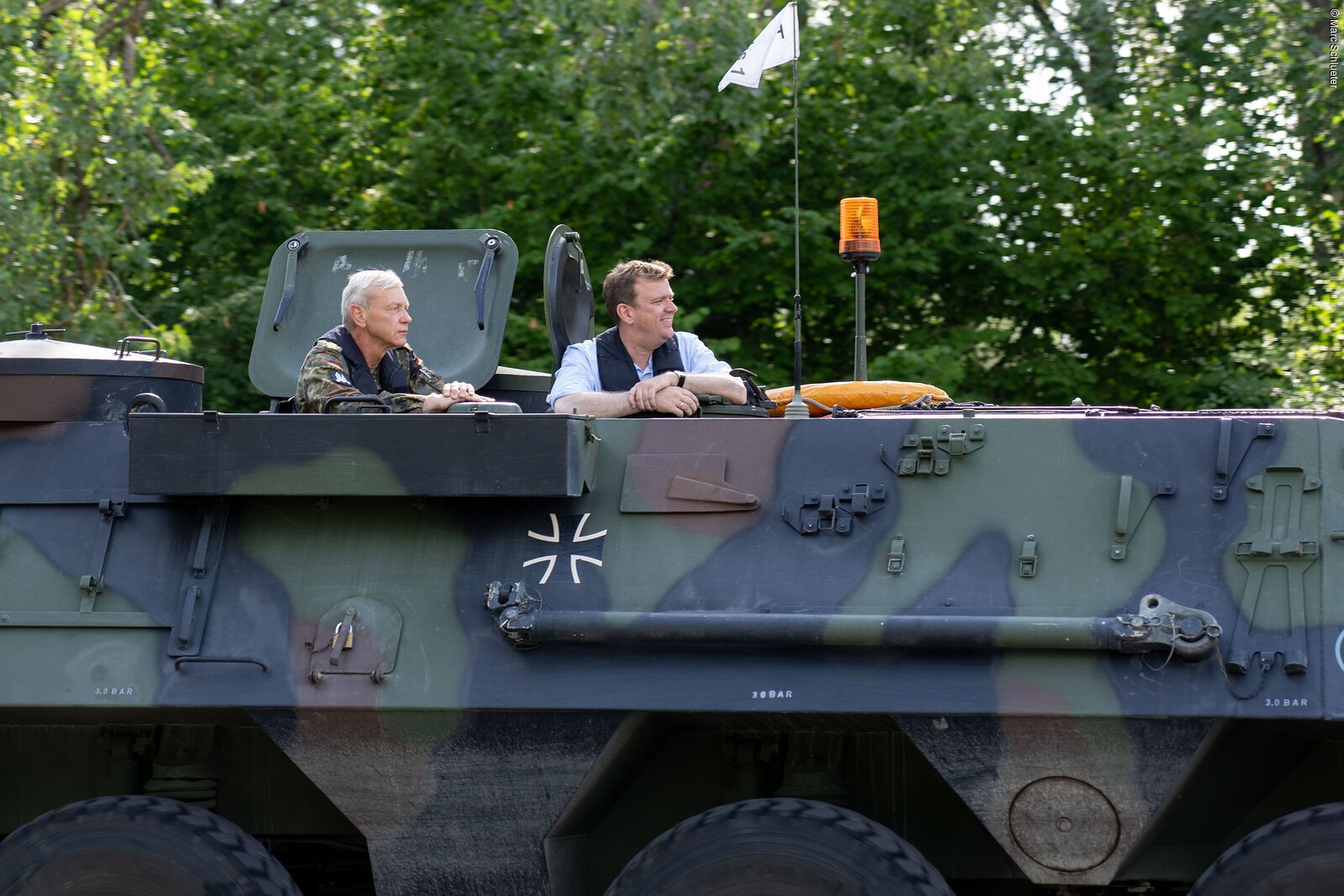 2023 folgte Dr. Brandl der Anregung des neuen Generals der Pionierschule, Herr Uwe Becker. In der Pionierkaserne auf der Schanz zeigten die Soldatinnen und Soldaten das komplette Leistungsspektrum der Pioniere. Die Mitfahrt im Fuchs, das Übersetzen über die Donau oder die Leistungsschau der Minenräumung werden die 96 Gäste so schnell nicht vergessen.