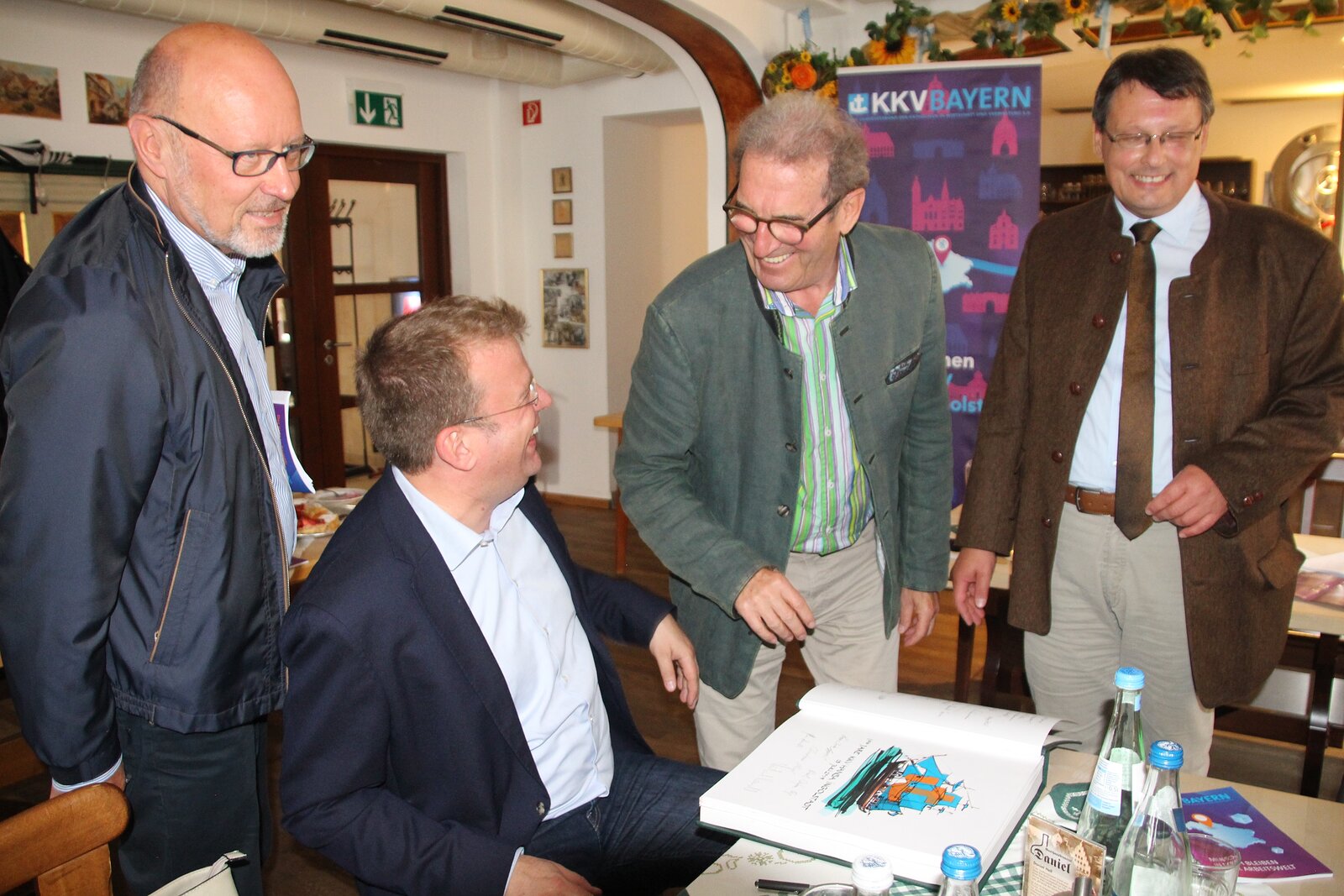 Auf stolze 100 Jahre blickt die KKV Hansa Ingolstadt zurück. Nach den Wirren des Ersten Weltkrieges wurde der Katholische Kaufmannsverein "Hansa" gegründet. Der Verein ist ein Zusammenschluss von Geschäftsleuten, Freiberuflern und Verwaltungsmitarbeitern, die sich allesamt ethischen Grundprinzipien und der katholischen Soziallehre verpflichtet fühlen. Anlässlich der Jubiläumsfeier war Dr. Reinhard Brandl MdB zu einem Vortrag eingeladen. Der Abgeordnete sprach über das Thema "Droht uns ein neuer kalter Krieg? Aktuelle Herausforderungen in der Verteidigungs- und Außenpolitik". In lockerer Runde stand Reinhard Brandl gerne für viele Fragen zur Verfügung. Abschließend trug sich der Abgeordnete noch ins Goldene Buch der KKV Hansa ein und bedankte sich herzlich beim Vorsitzenden Franz Eisenmann für die Einladung.