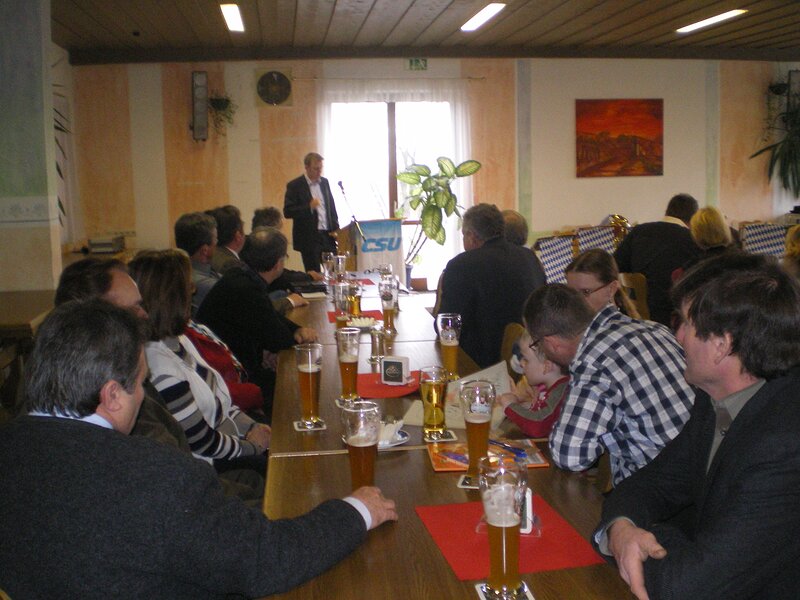 Der CSU-Ortsverband Süd und die Mittelstands Union waren Veranstalter des Politischen Frühschoppens im Sportheim Zuchering. Ortsvorsitzende Christine Held konnte zahlreiche Besucher begrüßen und freute sich über das Kommen des Referenten, MdB Dr. Reinhard Brandl. In seiner Rede streifte Reinhard Brandl alle Felder der Politik und berichtete über seine Erfahrungen und Erlebnisse der ersten 100 Tage in Berlin. Breiten Raum nahmen in seinen Ausführungen die Themen aus den Ausschüssen Bildung und Forschung sowie Verteidigung, denen er angehört, ein. So sprach Brandl in seiner Rede über erneuerbare Energien, Familienpolitik und den Kundus-Untersuchungsausschuss. Im Anschluß an sein Referat stand er den Gästen gerne für Fragen zur Verfügung.