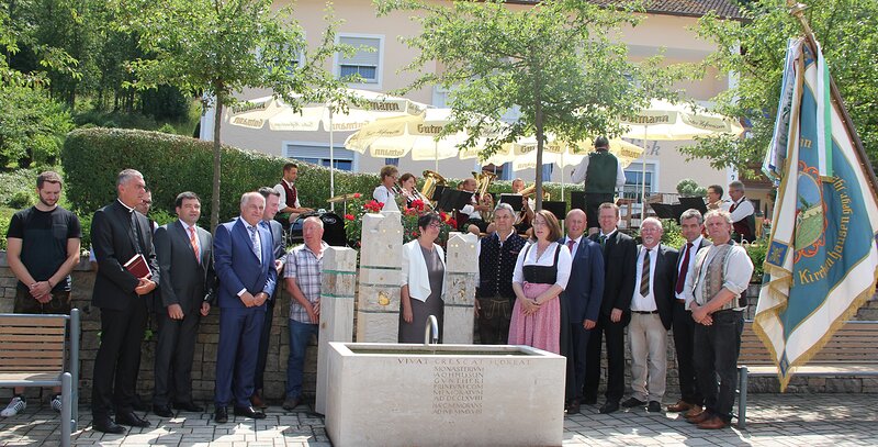 Mit einem sehr feierlichen Gottesdienst, zelebriert von Domkapitular Josef Funk, begann die Feier anlässlich des 1250jährigen Bestehens von Kirchanhausen in der Kirche Mariä Opferung. Anschließend übergab Kindings Bürgermeisterin Rita Böhm das Geschenk des Marktes Kinding, ein Kunstwerk des Eichstätter Bildhauers Rupert Fieger. Die drei Stehlen schaffen eine Verbindung zwischen dem bereits bestehenden Brunnen und dem dahinter liegenden Gelände mit Steinmauer in der Ortsmitte. Dr. Reinhard Brandl MdB überbrachte in seinem Grußwort die Glückwünsche und lobte "die starke, gelebte Dorfgemeinschaft". Für seine alljährliche Weihnachtskarte hatte Brandl 2017 das Motiv "Kirchanhausen" gewählt, "weil der Ort einfach so wunderschön im Altmühltal liegt". Jede Familie in Kirchanhausen hatte auch ein Exemplar dieser Karte bekommen. Der sehr gelungene Festtag wird den Bürgern von Kirchanhausen noch lange Zeit in Erinnerung bleiben.