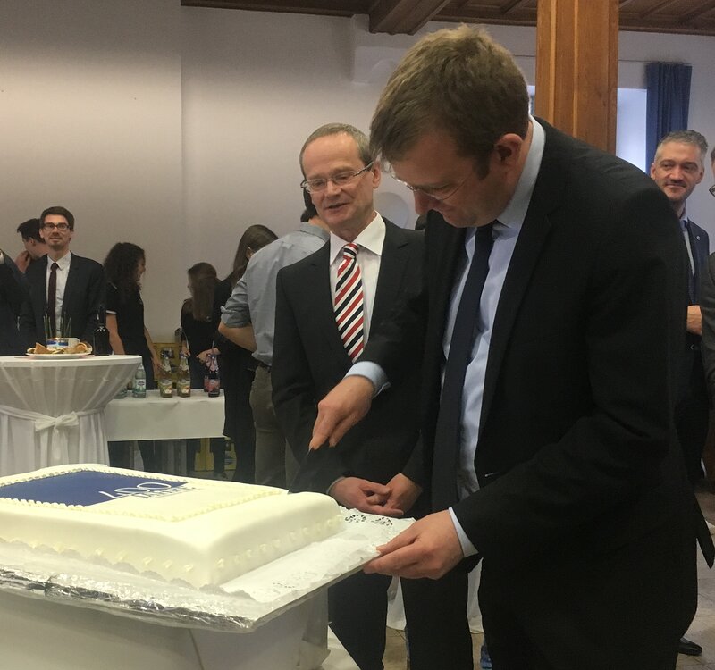 Ein 400. Jubiläum erlebt man nicht alle Tage. Und so freute es Dr. Reinhard Brandl besonders, bei ebendiesem Geburtstag des Descartes Gymnasiums in Neuburg zu Gast zu sein. Nach dem Grußwort von Ministerialrat Rolf Kussl, der für Staatssekretär Georg Eisenreich einspringen durfte, gab es beeindruckende Aufführungen von Theater- und Musikgruppen der Schule. Beim anschließenden Festakt durfte Dr. Brandl die Geburtstagstorte anschneiden, und überzeugte nach Augenzeugenberichten ruhiger Hand und großen Portionen.