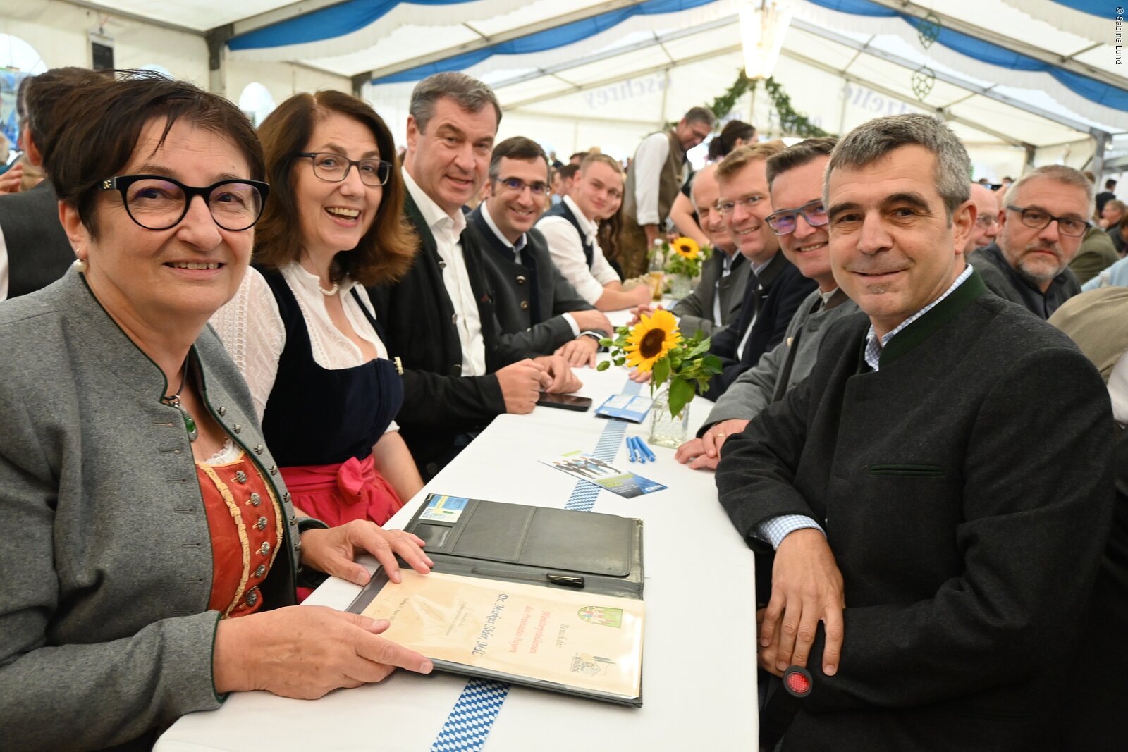 Das Hopfenzupferfest in Haunstetten ist definitiv ein Höhepunkt im Veranstaltungsreigen der Region, dem auch in diesem Jahr zahlreiche politische Ehrengäste beiwohnten. Die Ortsvorsitzende der CSU Kinding Rita Böhm durfte zur „Brotzeit“ im Festzelt den Bayerischen Ministerpräsidenten Dr. Markus Söder begrüßen. Seine Rede war ein klares Bekenntnis zum ländlichen Raum. „Bayerns Seele ist nun mal der ländliche Raum“, so Söder.