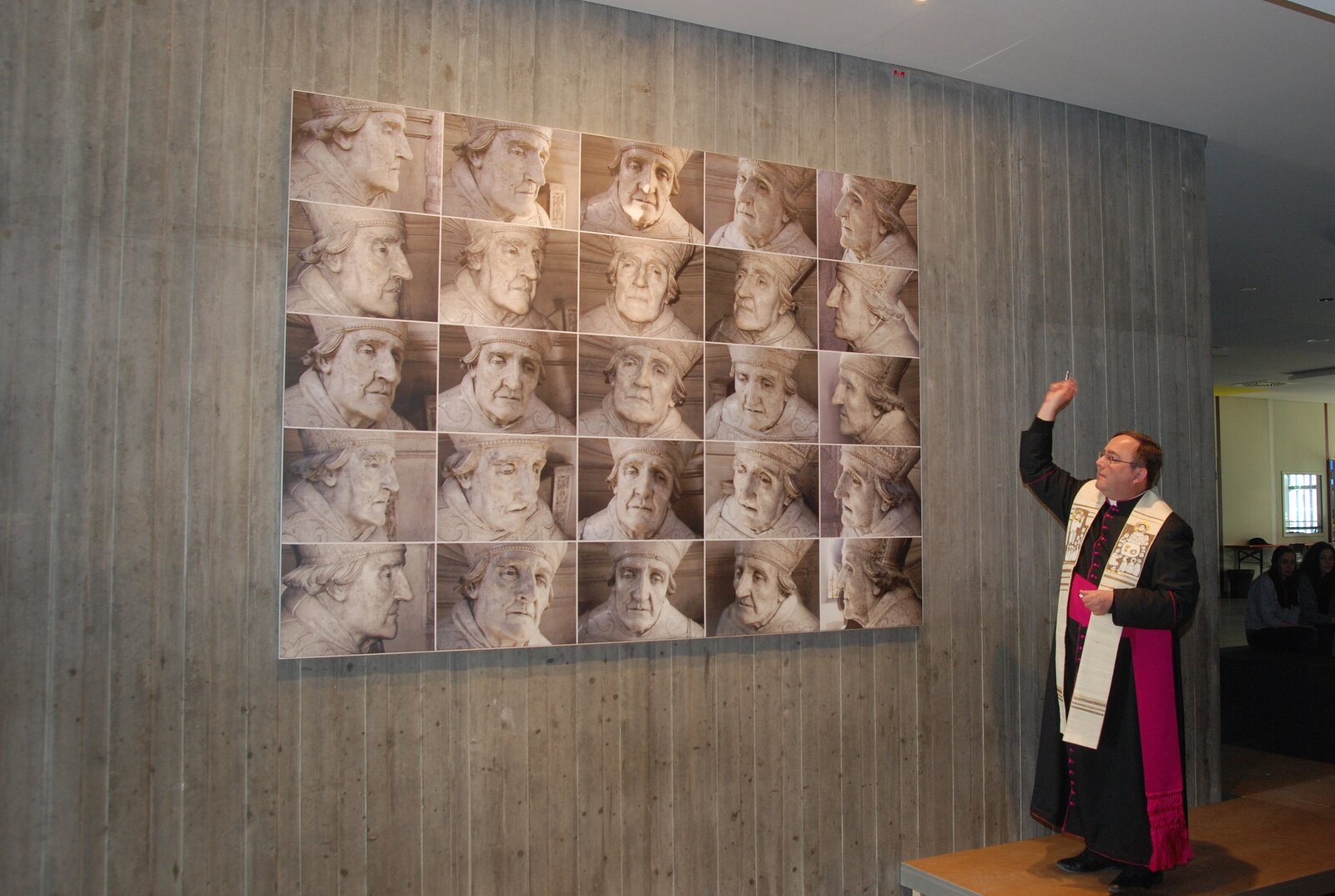 Vor 50 Jahren wurde das damalige Humanistische Gymnasium Eichstätt auf den Namen "Willibald-Gymnasium" umgetauft. Der Bistumsheilige des Bistums Eichstätt sollte den Schülerinnen und Schülern ein Vorbild sein. Zum Jahrestag der Umbenennung wurde in der Aula des Gymnasiums ein Kunstwerk des Künstlers Christof Cebulla enthüllt. Er hatte die Statue des Hl. Willibald im Eichstätter Dom aus verschiedenen Blickwinkeln und Lichtstimmungen fotografiert. 25 Bilder hatte er dann zu einem Tableau zusammengesetzt, das die facettenreiche Persönlichkeit des Hl. Willibald widerspiegelt. Schulleiter Claus Schredl freute sich sehr über die Anwesenheit des ehemaligen Schülers MdB Dr. Reinhard Brandl, der aus diesem Anlass gerne an sein altes Gymnasium gekommen war. Der Festakt wurde von den Schülerinnen und Schülern mit verschiedenen Einlagen umrahmt.
