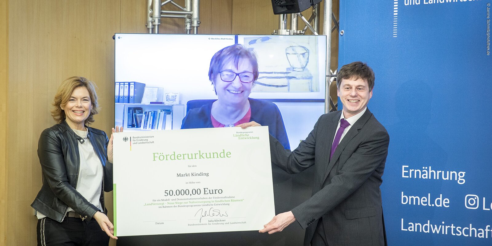 Bundesministerin für Ernährung und Landwirtschaft Julia Klöckner hat virtuell einen Förderbescheid an Kindings Bürgermeisterin Rita Böhm für das Projekt „Altmühl-Jura regional digital“ übergeben.