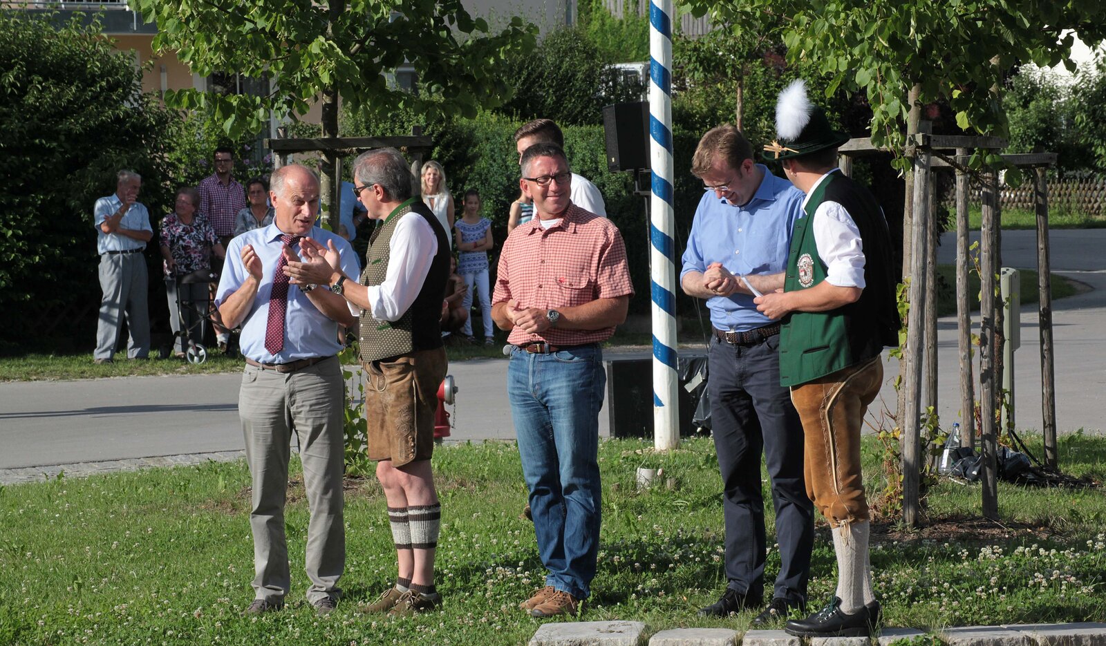 Die Schützengesellschaft Tell und die Schambachtaler Blaskapelle feierten bei herrlichem Wetter ein schönes Geburtstagsfest. Gerne waren auch MdB Dr. Reinhard Brandl und Bezirksrat Reinhard Eichiner wieder eimal nach Steinsdorf gekommen um beiden Vereinen zu gratulieren. Reinhard Brandl sagte in seinem Grußwort "ich habe in meinem Wahlkreis über 100 Ortschaften, aber nur ein Steinsdorf". Er spielte dabei auf die enorme Zahl von großartigen Veranstaltungen an, die in den letzten Jahren in Steinsdorf stattfanden.