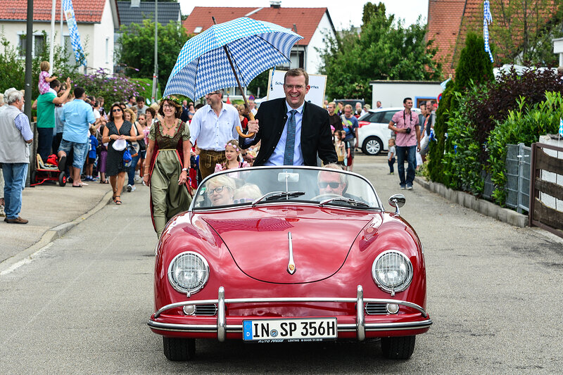 Höhepunkt der Feierlichkeiten zum 700jährigen Bestehen war der Festzug in Hepberg. Viele Zuschauer säumten die Zugstrecke und bewunderten die teiolnehmenden Gruppen. Schirmherr des Festes war MdB Dr. Reinhard Brandl, der beim Festzug in einem Porsche 356 Speedster chauffiert wurde. Der obligatorische Schirm für den Schirmherrn diente dem Sonnenschutz. Petrus hat es gut gemeint mit dem Wetter für die Hepberger. Reinhard Brandl sagte in seiner Festrede, "als Schirmherr bin ich für das Wetter zuständig! Ich habe meine Aufgabe ordentlich erledigt".