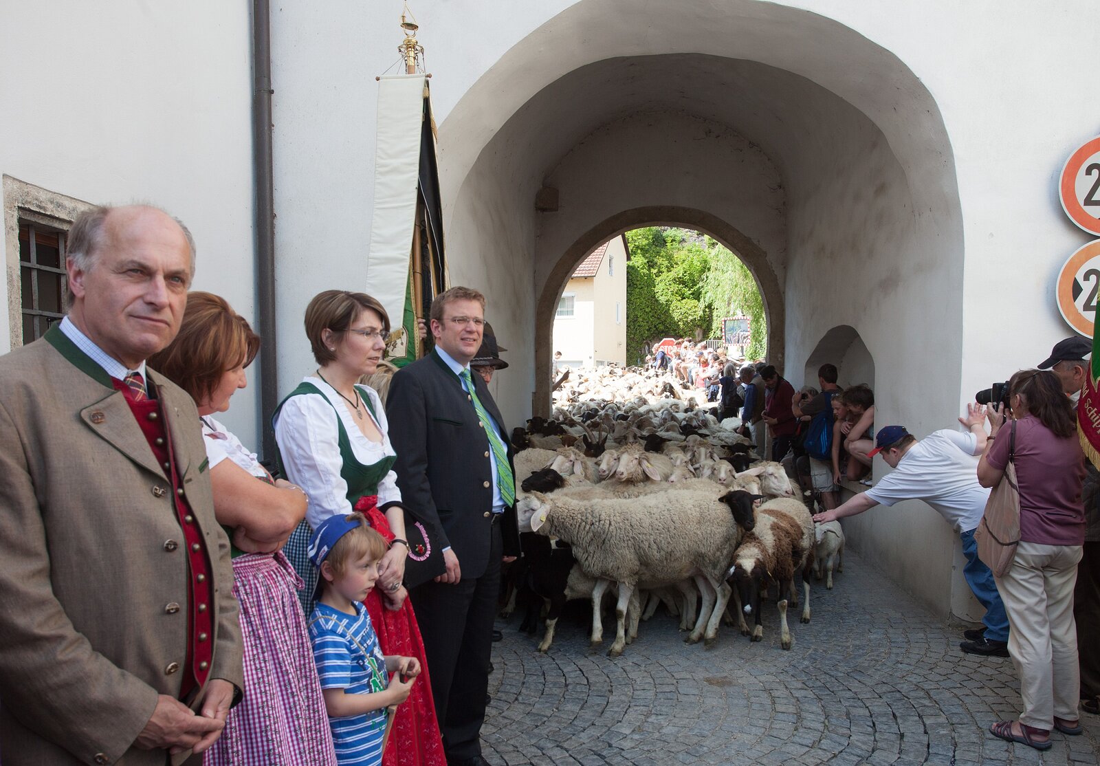 Bereits zum 10. Mal fand in Mörnsheim der Lammauftrieb statt. Als Schirmherr fungierte in diesem Jahr Ministerpräsident Horst Seehofer und begleitete in der traditionellen Schäfertracht die Herde vorm Kastnerplatz auf die Weide. Bürgermeister Richard Mittl konnte neben vielen Ehrengästen auch MdB Dr. Reinhard Brandl begrüßen, der sehr gerne wieder nach Mörnsheim gekommen war. Zum Lammauftrieb gehört traditionell ein reichhaltiges Programm, das vom Handwerkermarkt bis zur naturkundlichen Wanderung reicht. Der Mörnsheimer Lammauftrieb ist weit über die Grenzen der Region bekannt und lockte wieder Tausende Zuschauer an, die bei herrlichem Wetter einen abwechslungsreichen Tag im Gailachtal verbringen konnten.