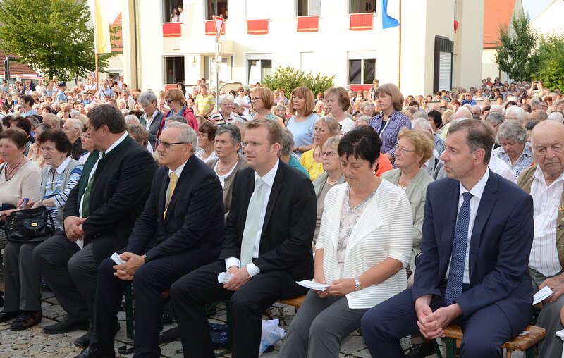 Zum Anna-Schäffer-Gebetstag waren auch in diesem Jahr wieder Gläubige in großer Zahl nach Mindelstetten gekommen. Den ganzen Tag über fanden Gottesdienste und Andachten in der Pfarrkirche statt. Den Abschluss bildete der Pontifikalgottesdienst am Abend im Freien. Weihbischof Dr. Josef Graf zelebrierte mit den Geistlichen aus dem ganzen Dekanat den Gottesdienst. Neben Bürgermeister Alfred Paulus, Alt-Bürgermeister Josef Kundler, stv. Landrätin Rita Böhm und Pförrings Bürgermeister Bernhard Sammiller war auch MdB Dr. Reinhard Brandl wieder in Mindelstetten mit dabei.