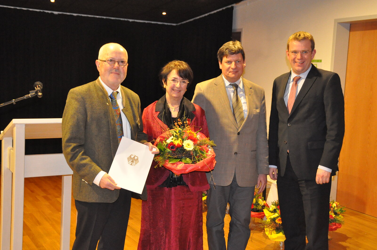 Achtzehn verdiente Bürgerinnen und Bürger aus dem Landkreis Neuburg-Schrobenhausen wurden in einer Feierstunde von stv. Landrat Alois Rauscher geehrt. 13 Bürgerinnen und Bürger erhielten das Ehrenzeichen des Bayerischen Ministerpräsidenten. Herr Otto Egen aus Neuburg wurde mit der Kommunalen Verdienstmedaille in Bronze geehrt, Herr Wolfgang Kirchner und Herr Wolfgang Winter erhielten Dankurkunden. Die 2. Bürgermeisterin der Stadt Schrobenhausen, Frau Inge Eberle, erhielt die Verdienstmedaille des Verdienstordens der Bundesrepublik Deutschland. Zu den hohen Auszeichnungen gratulierte auch MdB Dr. Reinhard Brandl den Geehrten, der zur Festveranstaltung nach Schrobenhausen gekommen war.