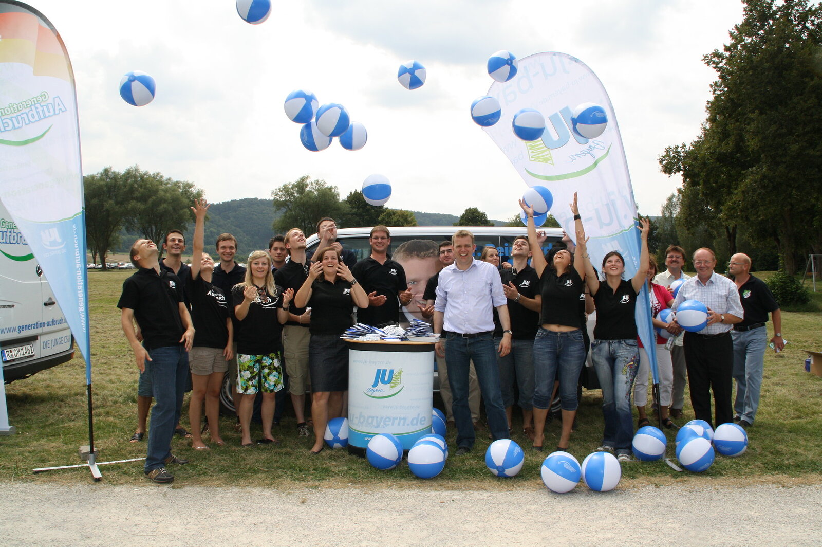 Mit über 20 Helfern aus seinem JU-Team startete Reinhard Brandl seine Badeweiher-Tour an der Kratzmühle zwischen Kinding und Beilngries. Mit Infomaterialien, Stiften und Wasserbällen suchten die Jugendlichen den Kontakt zu den Badegästen. Auch Reinhard Brandl kam mit etlichen Menschen aller Altersschichten ins Gespräch und hatte ein offenes Ohr für die Sorgen und Nöte seiner Gesprächspartner.