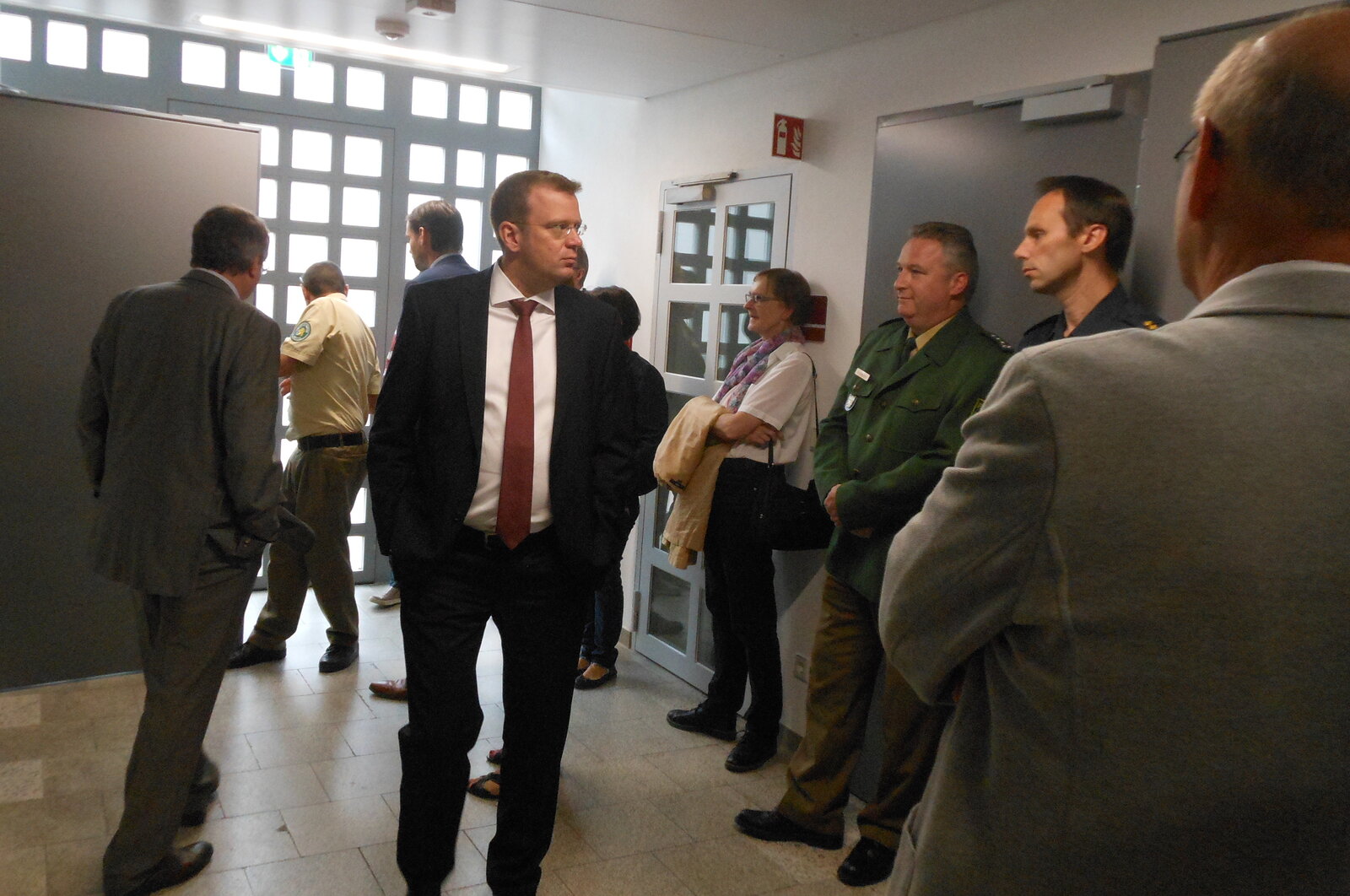 Zu einer Sonderführung in der komplett sanierten Justizvollzugsanstalt Eichstätt hatte der Leiter der JVA, Friedhelm Kirchhoff, die örtlichen Mandatsträger sowie die Polizei eingeladen. Oberbürgermeister Andreas Steppberger, MdB Dr. Reinhard Brandl, Polizeipräsident Dr. Karl-Heinz Blümel von der Bundespolizei und EPHK Heinz Rindlbacher, Leiter der PI Eichstätt, machenten sich vor Ort ein Bild. Die JVA Eichstätt wird jetzt als Einrichtung für Abschiebungshaft genutzt.