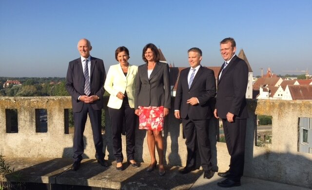Zu einer Besichtigung des Kavalier Dallwick an der Ingolstädter Esplanade war Staatsministerin Ilse Aigner vor Ort. Die Bayerische Wirtschaftsministerin informierte sich über die Konzeption des dort geplanten Digitalen Gründerzentrums, für das die Stadt Ingolstadt kürzlich den Zuschlag erhalten hatte. THI-Präsident Prof. Walter Schober, Oberbürgermeister Dr. Christian Lösel, MdL Christine Haderthauer und MdB Dr. Reinhard Brandl begleiteten die Ministerin.