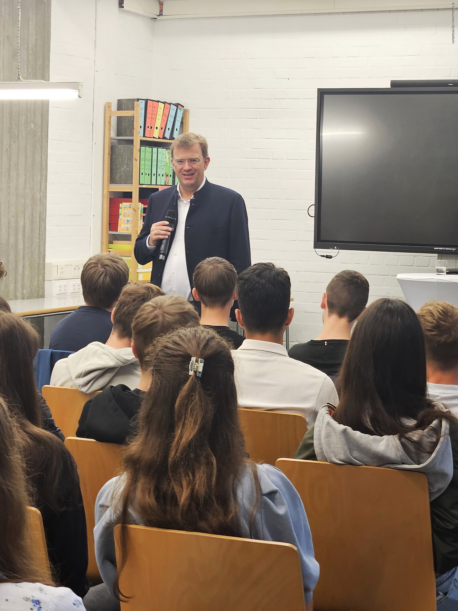 Die Zehntklässler waren zwei Wochen zuvor auf Einladung des Bundestagsabgeordneten in Berlin und konnten sich vor Ort einen Eindruck von der politischen Arbeit verschaffen. Auf dem Programm standen unter anderem der Besuch der Reichstagskuppel und der Besuch der historischen Ausstellung im Deutschen Dom.