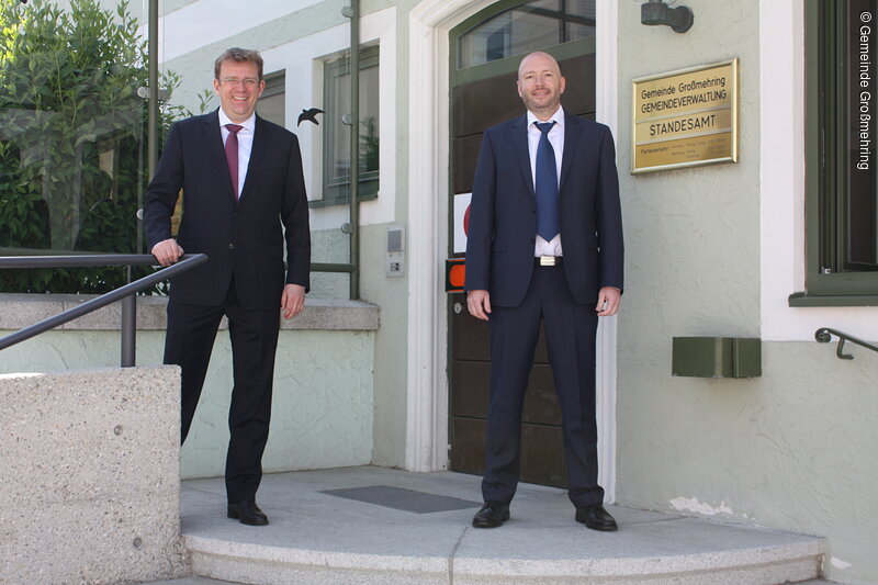 Bürgermeister Rainer Stingl freute sich sehr über den Besuch von Dr. Reinhard Brandl im Großmehringer Rathaus. Vor Ort informierte sich der Abgeordnete über verschiedene Projekte in der Gemeinde Großmehring und sicherte Bürgermeister Stingl seine Unterstützung zu.