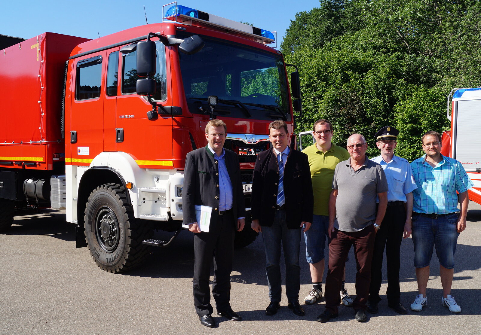 Eingehend informierte sich MdB Dr. Reinhard Brandl über den Dekontaminationslastkraftwagen, Dekon-LKW P, der seit Anfang diesen Jahres bei der Feuerwehr Ehekirchen stationiert ist. Bei dem Einsatzfahrzeug handelt es sich um ein Bundesfahrzeug, welches für den Einsatz bei Gefahrstoffunfällen bzw. ABC-Einsätzen konzipiert ist. Seine Beladung dient der Einrichtung eines Dekontaminationsplatzes, auf dem Einsatzkräfte und Betroffene, die bei einem Unfall oder im Verteidigungsfall mit gefährlichen Substanzen in Berührung gekommen sind, durch die Besatzung dekontaminiert werden können. Es ist das einzige Fahrzeug dieser Art, das im Landkreis Neuburg-Schrobenhausen stationiert ist. Neben den Vertretern der Feuerwehr Ehekirchen und den Gemeinderäten war auch Kreisbrandrat Erwin Pfleger gekommen und informierten den Abgeordneten über den Ausbildugnsstand der Ehekirchner Mannschaft am Fahrzeug, die Alarmierung und das Zusammenspiel mit anderen Einheiten im Katastrophenschutz.