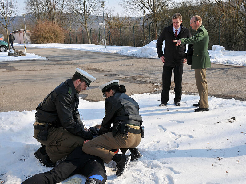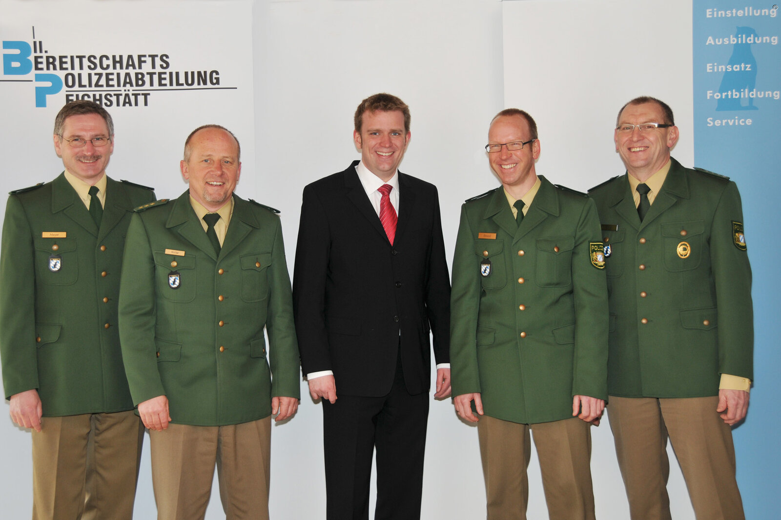 Polizeidirektor Hubert Müller begrüßte MdB Dr. Reinhard Brandl bei der Bereitschaftspolizei Eichstätt, der sich vor Ort ein Bild über die Strukturen einer moderen Polizeiausbildung machte. Mit dem Führungsstab der BePo diskutierte er auch die aktuellen und zukünftigen Problemstellungen der Bereitschaftspolizeiabteilung mit den derzeit 800 Beschäftigen. Als Mitglied des Verteidigungsausschusses hat R. Brandl häufig mit Bundeswehreinrichtungen zu tun. In diesem Zusammenhang interessierte er sich vor allem auch für den Ablauf der Ausbildung bei der bayerischen Polizei sowie das Zusammenwirken von Polizei und Bundeswehr bei Auslandseinsätzen. Erfreut zeigte er sich dabei, dass neben der formalen Ausbildung im rechtlichen und taktisch-praktischen Bereich vor allem die Persönlichkeitsbildung der jungen Beamtinnen und Beamten einen hohen Stellenwert hat. Den situationsbezogenen richtigen Umgang mit dem Bürger konnte MdB Brandl bei Einschreitsituationen im polizeilichen Einsatztraining hautnah miterleben. Dr. Brandl war sehr beeindruckt von der professionellen Vorbereitung der bayerischen Polizei auf künftige Einsätze .
