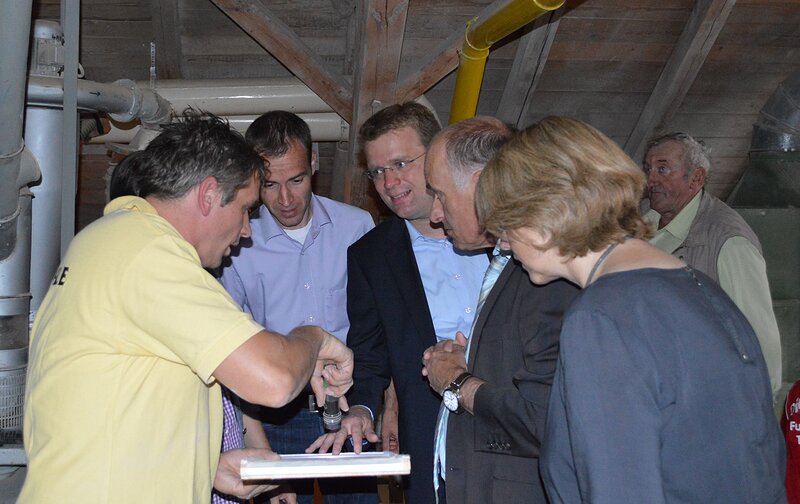 Die Geschäftsführerin der Hainmühle GmbH, Frau Andrea Schmidt, begrüßte in ihrer Mühle die Gäste des CSU-Ortsverbandes Titting, die MdB Dr. Reinhard Brandl, Bezirksrat Reinhard Eichiner und die stv. Landrätin Tanja Schorer-Dremel mitgebracht hatten. Die Hainmühle befindt sich seit 1892 im Besitz der Familie Schmidt. Damals war es noch eine reine Mühle, heute ist das Spektrum des Unternehmens weitaus größer. Es umfasst neben der Lagerung und dem Handel mit Getreide, Futtermitteln, Düngemitteln und Pflanzenschutzmitteln auch den Vertrieb von Heizöl und Diesel. Mittlerweile arbeiten in der Hainmühle sieben Mitarbeiter und 3 Aushilfskräfte. Die sehr interessierten Gäste waren beeindruckt von der Vielfalt der Produkte, die in der Hainmühle hergestellt und vermarktet werden.