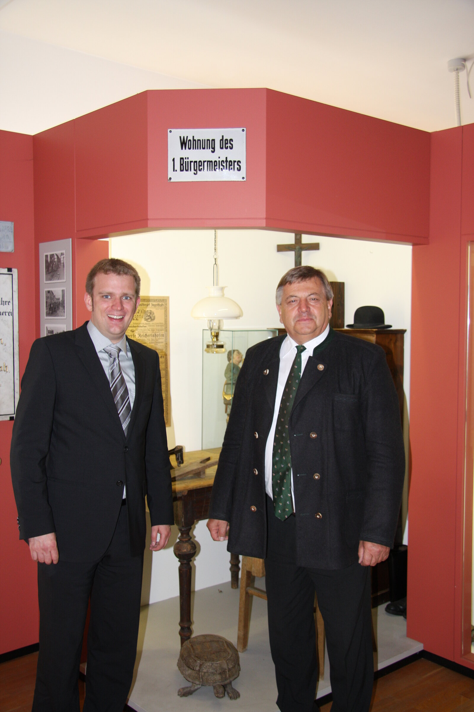 Beeindruckt vom großen Engagement des Geschichtsvereins zeigte sich Dr. Reinhard Brandl bei einer Führung durch das Museum Kösching. Der Köschinger Heimatpfleger Friedrich Lenhardt (zweiter von links) erläuterte im Museum des Marktes die römischen Inschriften, die er anhand alter Vorlagen und der Originale rekonstruiert hat und als Anstoß für eine Sonderausstellung zum Thema „500 Jahre Römertourismus“ genommen hat. Gemeinsam mit Otto Frühmorgen, Vorsitzender des Geschichtsvereins (links), und Bürgermeister Max Schöner besichtigte Brandl auch das neueste Projekt des Vereins, den Römergarten. Für die beiden Politiker Brandl und Schöner war die „Wohnung des 1. Bürgermeisters“ natürlich das Highlight des Besuchs. Am Beispiel des Museumsvereins würdigten sie das reiche Vereinsleben das ehrenamtliche Engagement der Bürger in Kösching, Kasing und Bettbrunn.