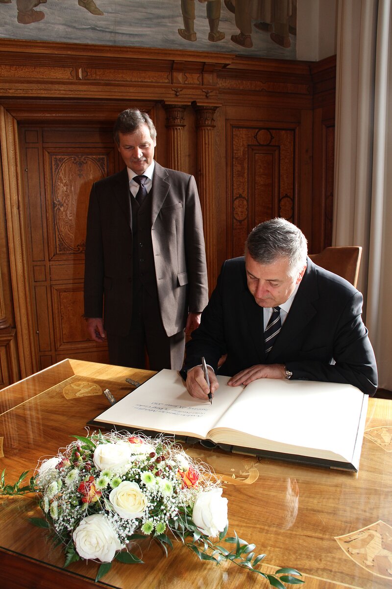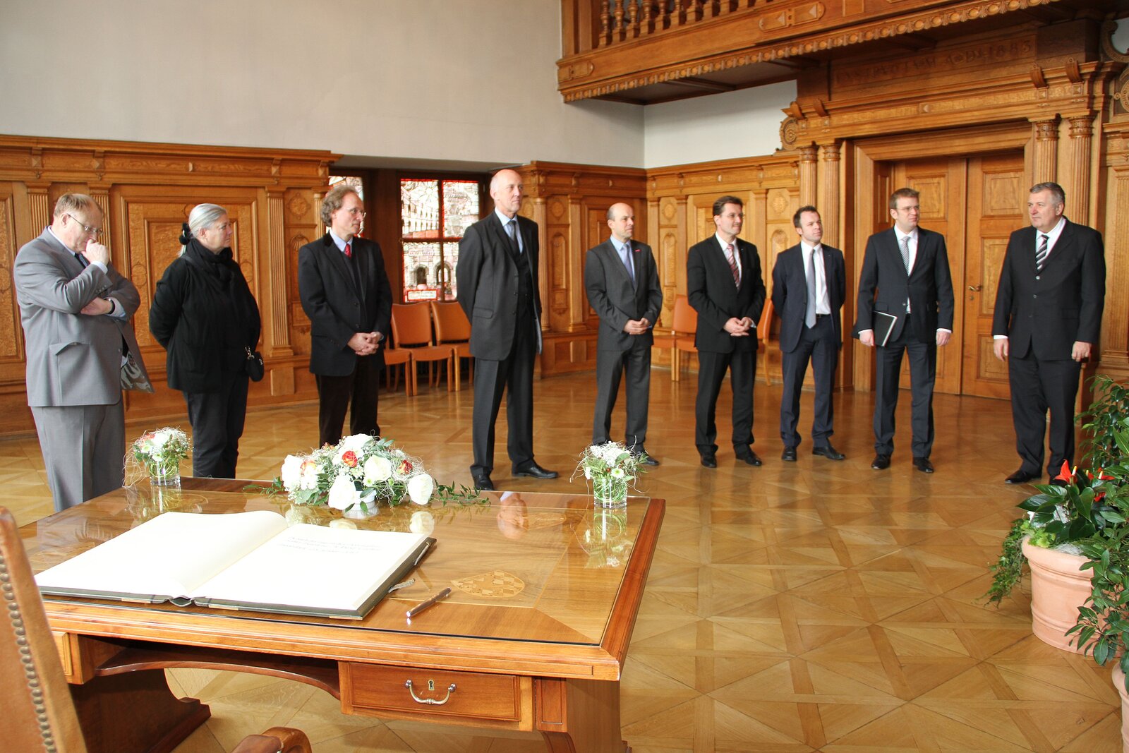 Botschafter Czukor trägt ins Goldene Buch der Stadt Ingolstadt ein