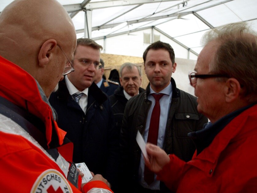 Gemeinsam mit MdB Dr. Andreas Lenz besuchte MdB Dr. Reinhard Brandl den Warteraum Erding und informierte sich vor Ort über die Situation der Asylsuchenden. Mit den Helfern des BRK und dem Leiter der Einrichtung, Heiko Werner vom Bundesamt für Migration und Flüchtlinge, besichtigten die beiden Abgeordneten die Einrichtung. Sie wurden von Brigadegeneral Dotzler und Oberst Alder begleitet.