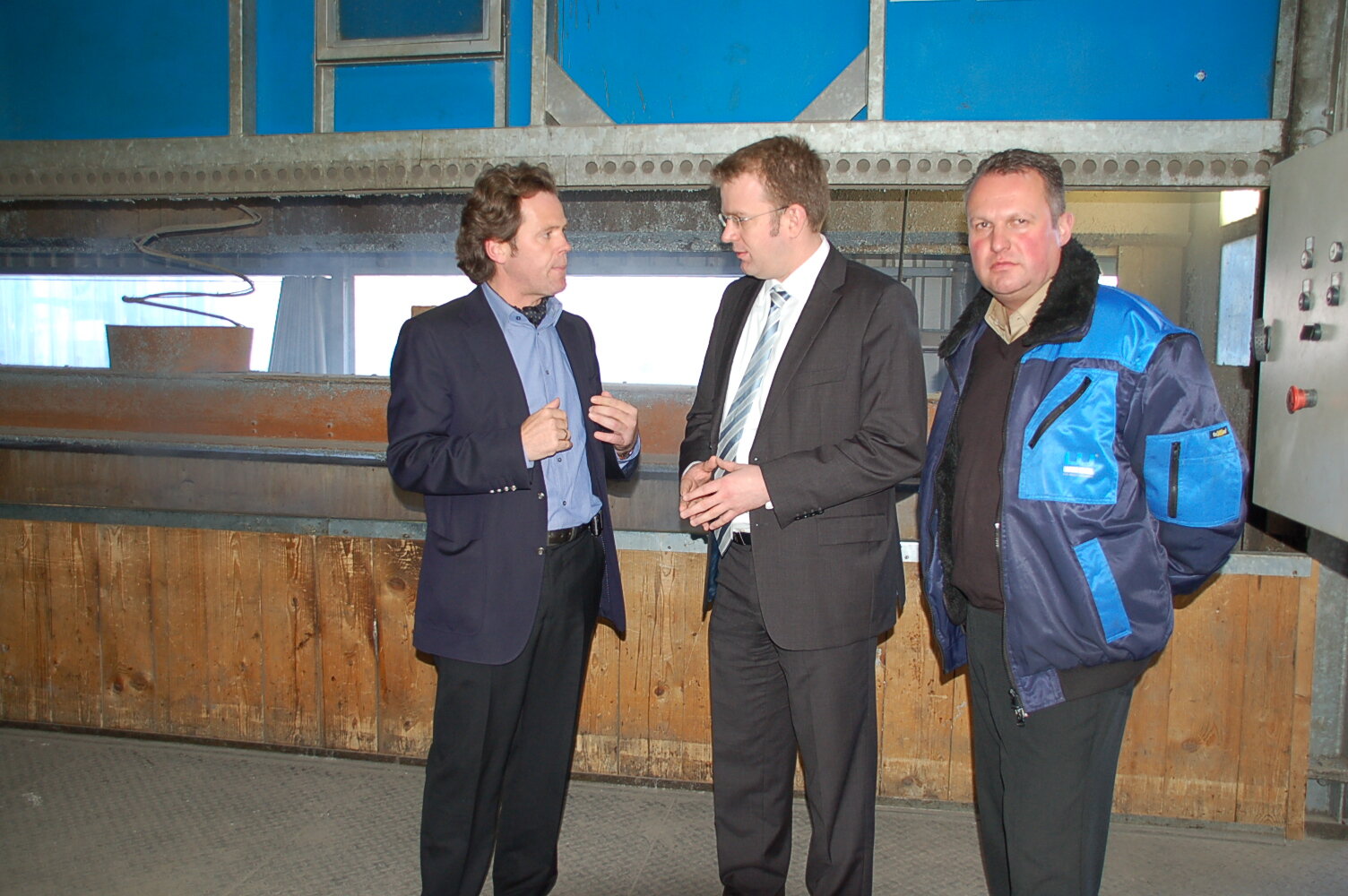 Der Stahlbauer braucht vor Ort Verzinker, deshalb sei die Firmenphilosophie der Firma Wiegel die der kurzen Wege, um schnell und kostengünstig den Kunden beliefern zu können. Dies erklärt der Geschäftsführer der Wiegel-Firmengruppe während eines Besuches des Bundestagsabgeordneten Dr. Reinhard Brandl in Denkendorf. Die Fa. Wiegel hält 28 Standorte in fünf Ländern, wobei 20 der Standorte in Deutschland liegen. Die Firmengruppe beschäftigt 1.300 Mitarbeiter, davon 28 fest im Werk Denkendorf. Seit jeher, erklären Alexander Hofmann und der Denkendorfer Werkleiter Stephan Schäfer, sei das Unternehmen dem Umweltschutz verbunden. Die Firmengruppe habe die Umweltmedaille der Stadt Nürnberg und die bayerische Umweltmedaille erhalten. Gemeinsam mit dem Landesamt für Umweltschutz habe die Fa. Wiegel die für die Umwelt optimale Anlage entwickelt. MdB Dr. Reinhard Brandl war sehr beeindruckt vom Aufbau der Firmengruppe und war äußert interessiert an den Arbeitsabläufen in der Feuerverzinkerei.