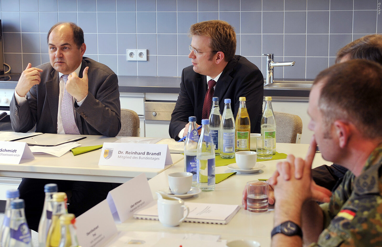 Auf Einladung von MdB Dr. Reinhard Brandl besuchte der Staatssekretär im Verteidigungsministerium, Christian Schmidt, das Kreiswehrersatzamt in Ingolstadt. Der Staatssekretär konnte den 65 Mitarbeiterinnen und Mitarbeitern des Kreiswehrersatzamtes noch nichts über die Zukunft des Bundeswehrstandortes Ingolstadt sagen. Die Entscheidungen fallen erst im Herbst diesen Jahres. Der Leiter des Kreiswehrersatzamtes, Herr Christian Fuchs, konnte den Politikern mitteilen, dass die Bewerberzahlen für den freiwilligen Dienst im Einzugsgebiet zufriedenstellend sind. Die Truppe müsse die Werbetrommel kräftig rühren, um geeigneten Nachwuchs zu gewinnen. Damit haben auch die Kreiswehrersatzämter eine neue Aufgabe. MdB Dr. Reinhard Brandl versprach, sich mit aller Kraft für den Standort Ingolstadt einzusetzen.
