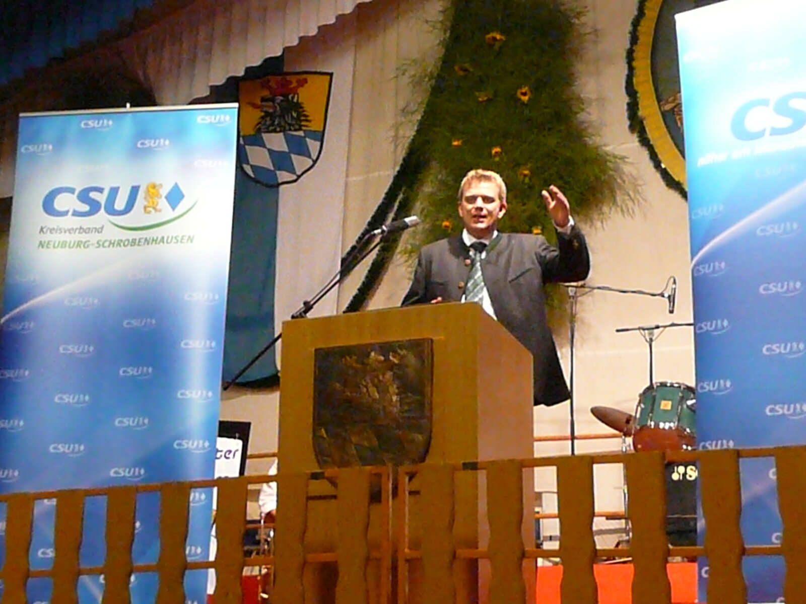 In Begleitung von MdB Dr. Reinhard Brandl, MdL Erika Görlitz, den Bezirksräten Annemarie Höcht und Rudolf Geiger sowie Schrobenhausens Bürgermeister Dr. Karlheinz Stephan wurde Bundsminsiterin Ilse Aigner im Festzelt herzlich eimpfangen. Dort erwartete die Ministerin eine ganz besondere Art der Begrüßung - die neue Spargelkönigin Monika I. sang eine Hymne auf das edele Gemüse. Den politischen Abend eröffnete CSU-Kreisvorsitzender Alfred Lengler, der die Veranstaltung als Zeichen dafür wertete, dass die CSU nicht nur in Wahlkampfzeiten Rede und Antwort stehen möchte. Die Ministerin bedankte sich für den herzlichen Empfang und ging in ihrer Rede nicht nur auf ihre Fachthemen ein. Sie streifte alle Felder der Politik und wurde für ihe großartige Rede von den 700 Besuchern mit stürmischem Applaus bedacht. In seinem Schlußwort bedankte sich Reinhard Brandl bei der Ministerin für ihr Kommen und bei den Verantwortlichen für die perfekte Organisation.