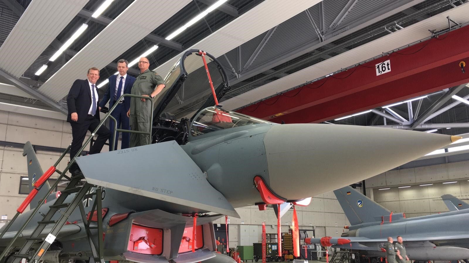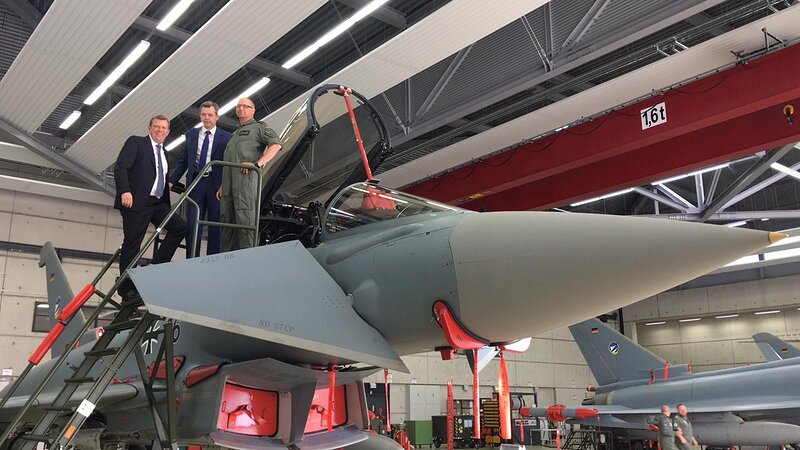 Beim Truppenbesuch auf dem Fliegerhorst Neuburg-Zell wurde Verteidigungsstaatssekretär Thomas Silberhorn von Dr. Reinhard Brandl MdB begleitet. Die beiden Politiker ließen sich von Kommodore Oberst Thomas Früh das Cockpit eines Eurofighters erklären. Die beiden Politiker nahmen auch zur PFC-Problematik Stellung und kündigten an, dass bis Ende August zur Grundwassermessung auf PFC-Gehalt Messungen an verschiedenen Stellen am Fliegerhorst durchgeführt werden. "Wir wollen möglichst schnell belastbare Ergebnisse" so Reinhard Brandl.
