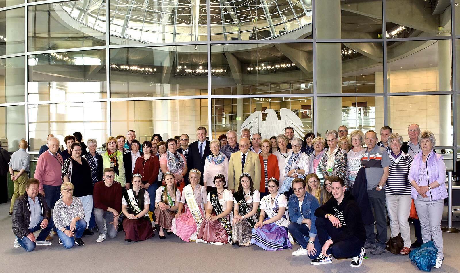 Fünfzig Gäste, darunter sechs Produktköniginnen, aus dem gesamten Wahlkreis waren auf Einladung von Dr. Reinhard Brandl MdB vier Tage in der Bundeshauptstadt. Am Sonntag in der Frühe ging es in Ingolstadt los in Richtung Berlin. Dort erwartete der Abgeordnete seine Gäste bereits im Reichstag und begrüßte Sie herzlich. Nach einer exklusiven Führung durch die Liegenschaften des Bundes stand er der Gruppe für ein einstündiges Gespräch im Paul-Löbe-Haus zur Verfügung. Weitere Programmpunkte waren ein Gespräch im Bundesinnenministerium, ein Besuch in der Landesvertretung Bayern, im Tränenpalast und in der Gedenkstätte Deutscher Widerstand. Eine in drei Etappen durchegführte Stadtrundfahrt rundete das Programm ab. Nach dem Mittagessen ging es am Mittwoch wieder zurück nach Ingolstadt. Abschließend waren sich alle Teilnehmer einig: "Berlin ist immer eine Reise wert!".