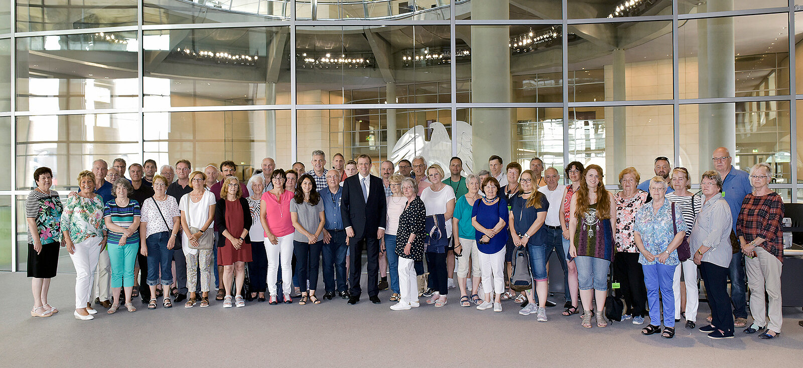 Fünfzig Damen und Herren aus dem gesamten Wahlkreis machten sich am Sonntag morgen auf den Weg zu einer 4tägigen Informationsfahrt in die Bundeshauptstadt. Auf dem Programm stand ein Besuch im Bundesministerium der Verteidigung, im Bundesministerium des Innern, für Bau und Heimat, in der Landesvertretung Bayern,im Tränenpalast sowie bei der Deutschen Bahn AG. Eine Stadtrundfahrt sowie eine Schifffahrt auf der Spree durch das Regierungsviertel rundete das Programm ab. Höhepunkt der Reise war ein Besuch im Deutschen Bundestag mit einem Vortrag auf der Besuchertribüne des Plenarsaals. Anschließend trafen die Besucher dann ihren Gastgeber, den Heimatabgeordneten Dr. Reinhard Brandl, der seine Gäste herzlich willkommen hieß an seinem Berliner Arbeitsplatz. In einem einstündigen Gespräch stellte der Abgeordnete seine Tätigkeit im Deutschen Bundestag sowie im Wahlkreis dar. Gerne beantwortete er anschließend die Fragen der Gäste. Abschließend wünschte Dr. Brandl den Teilnehmerinnen und Teilnehmern noch schöne und informative Tage in der Bundeshauptstadt und eine gute Heimreise.