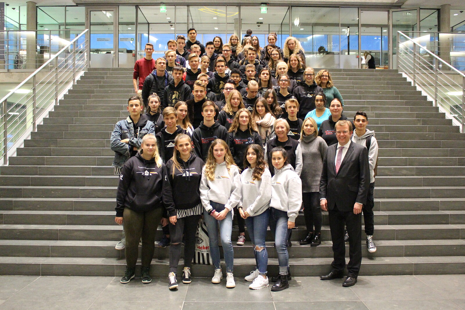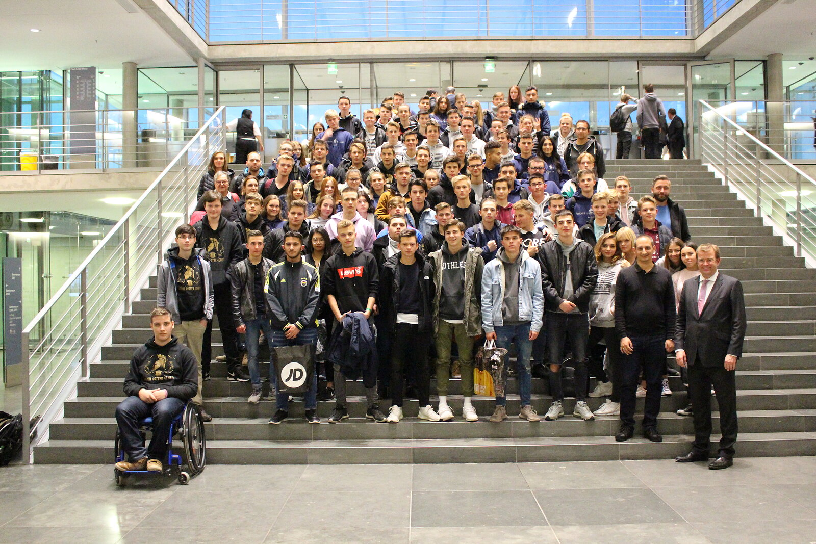 Die Schülerinnen und Schüler der Ludwig Fronhofer Realschule in Ingolstadt fahren regelmäßig auf Abschlussfahrt in die Bundeshauptstadt. Neben den zahlreichen Sehenswürdigkeiten Berlins gehört auch ein Besuch im Bundestag zum festen Programm. Selbstverständlich nahm sich der Abgeordnete Dr. Brandl die Zeit, um mit den Schülerinnen und Schülern über seinen Alltag im Bundestag zu sprechen.