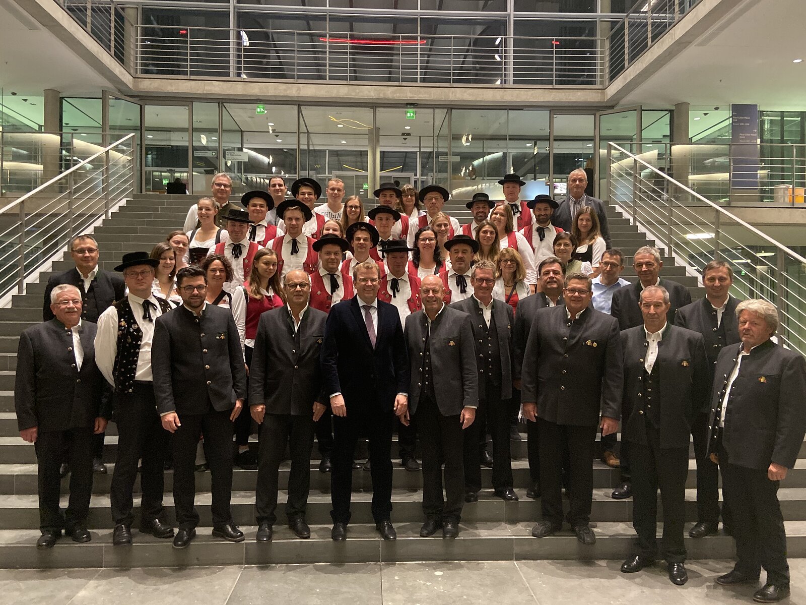 Auf Einladung von Dr. Reinhard Brandl waren der Volksfestausschuss Eichstätt sowie die Stadtkapelle Eichstätt nach Berlin gekommen. Auf dem Programm stand neben dem Besuch des Bundesverteidigungsministeriums und des Reichstages auch ein Gespräch im Bundesverkehrsministerium. Bundesminister Andreas Scheuer begrüßte die Gäste aus Eichstätt persönlich. Die Stadtkapelle ließ es sich nicht nehmen und überbrachte dem Minister einen musikalischen Gruß aus der Heimat.
