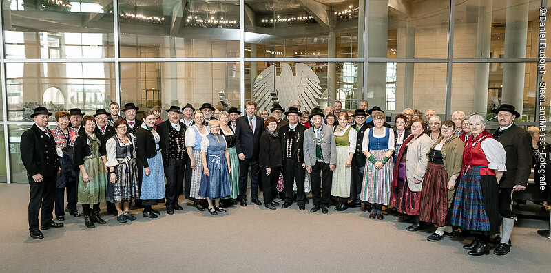 Auf Einladung des Bundstagsabgeordneten Dr. Reinhard Brandl besuchten die Repräsentanten des Donaugau-Trachtenverbandes die Bundeshauptstadt. Der Abgeordnete empfing seine Gäste im Reichstagsgebäude und unternahm eine Führung durch die Liegenschaften des Bundes. Die Damen und Herren durften auch das Büro von Dr. Brandl besuchen. Auf dem Programm stand auch eine 3-stündige Stadtrundfahrt und ein Besuch des Dokumentationszentrums "Topographie des Terrors". Beim Besuch im Bundesministerium des Innern gab es für die Gäste noch eine Überraschung: Bundesminister Horst Seehofer begrüßte die Gruppe persönlich und nahm sich eine halbe Stunde Zeit für ein Gespräch. Der krönende Abschluss der Reise war dann noch der Besuch beim Bundesnachrichtendienst. Mit vielen Eindrücken traten die Gäste dann die Heimreise an.