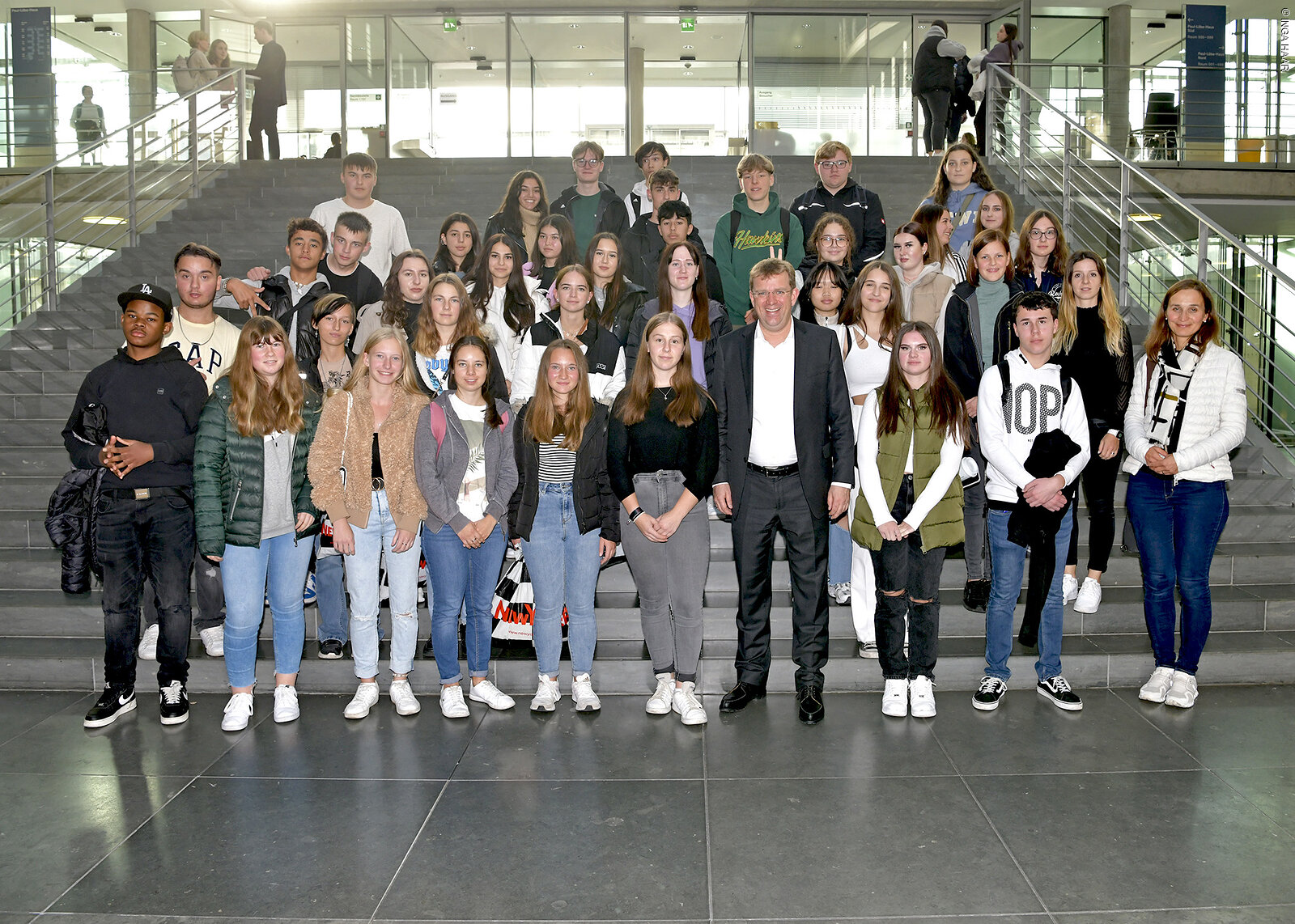 Reinhard Brandl hat sich über den Besuch der Schülerinnen und Schüler der Wirtschaftsschule Neuburg gefreut. Es ging um den Krieg in der Ukraine und um die Energiekrise.