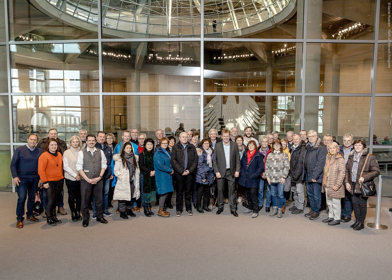 Gruppenfoto der Besuchergruppe eines Abgeordneten im Deutschen Bundestag in Berlin.