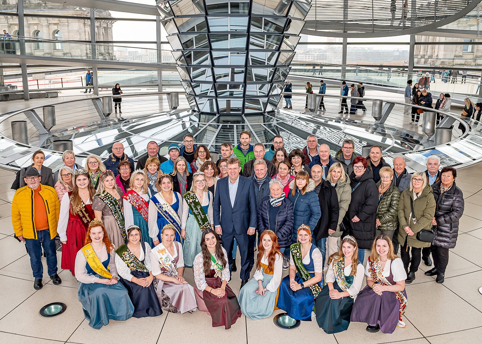 Zum Abschluss des Besuchs stand auch ein Rundgang durch die Kuppel des Reichstagsgebäudes auf dem Programm, bei dem die Gruppe den beeindruckenden Blick über das politische Berlin genießen konnte. Dort wurde auch der Schnappschuss zur Erinnerung gemacht.