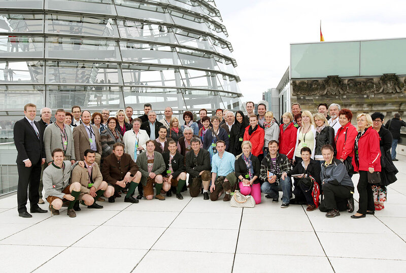 Die Burgfunken Neuburg, die Schanzer Musikanten und weitere Gäste hatte MdB Dr. Reinhard Brandl zu einem 4-tägigen Berlin Besuch eingeladen. Neben der Landesvertretung Bayern, dem Auswärtigen Amt, dem Bundesrat und einer Stadtrundfahrt stand auch der Besuch im Reichstag auf dem Programm. Auf der Besuchertribüne des Plenarsaales waren die Gäste ganz nah am politischen Geschehen in der Hauptstadt. Im Anschluß daran fand ein Gespräch mit Reinhard Brandl statt. Der Abgeordnete begrüßte die Gäste herzlich in der Hauptstadt und berichtete über seine Arbeit im Parlament. Gerne begleitete er die Gruppe noch auf die Reichstagskuppel zum Gruppenfoto.
