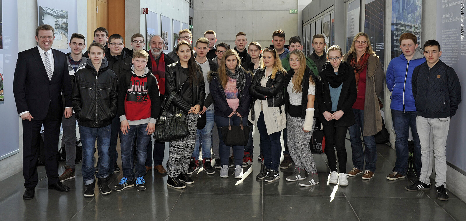 Die Klassenfahrt der Grund- und Mittelschule Ehekirchen führte dieses Jahr nach Berlin. Klassenleiterin Brigitte Link hatte für die Schülerinnen und Schüler ein sehr interessantes Programm vorbereitet. Neben den vielen Sehenswürdigkeiten in Berlin war der Höhepunkt der Reise der Besuch des Deutschen Bundestages im Reichstag. Von der Reichstagskuppel aus konnten die Schüler bei strahlendem Sonnenschein einen herrlichen Blick über die Stadt geniessen. Im Anschluss daran stand ein Gespräch mit dem Heimatabgeordneten Dr. Reinhard Brandl auf dem Programm. Der Abgeordnete begrüßte die Gäste herzlich im Paul-Löbe-Haus und stand eine Stunde für Fragen zur Verfügung. Zeit für ein Erinnerungsfoto hatte er auch noch, aber dann erklang schon die Glocke und rief der Abgeordneten zu einer namentlichen Abstimmung in den Plenarsaal. Reinhard Brandl wünschte den Schülerinnen und Schülern noch schöne und erlebnisreiche Tage in der Bundeshauptstadt und eine gute Heimreise.