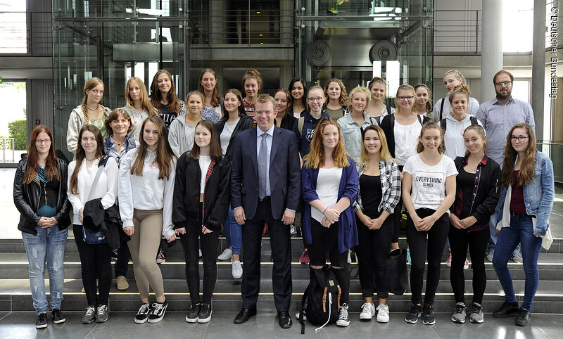 Zur Klassenfahrt waen die Schülerinnen der Maria-Ward-Schule Eichstätt in die Bundeshauptstadt gereist. Klassenleiterin Gabriele Strobel hatte wieder einmal ein sehr interessantes Programm vorbereitet. Unter anderem war auch der Besuch des Deutschen Bundestages eingeplant. Die jungen Damen wurden von MdB Dr. Reinhard Brandl an seinem Berliner Arbeitsplatz im Paul-Löbe-Haus herzlich willkommen geheißen. Der Abgeordnete stand eine Stunde für Fragen zur Verfügung und erläuterte auch seine Arbeitswoche im Parlament. Anschließend konnten die Schülerinnen von der Besuchertribüne des Plenarsaales eine Sitzung des Deutchen Bundestages verfolgen. Den Abschluß bildete dann die Besichtigung der Reichstagskuppel.