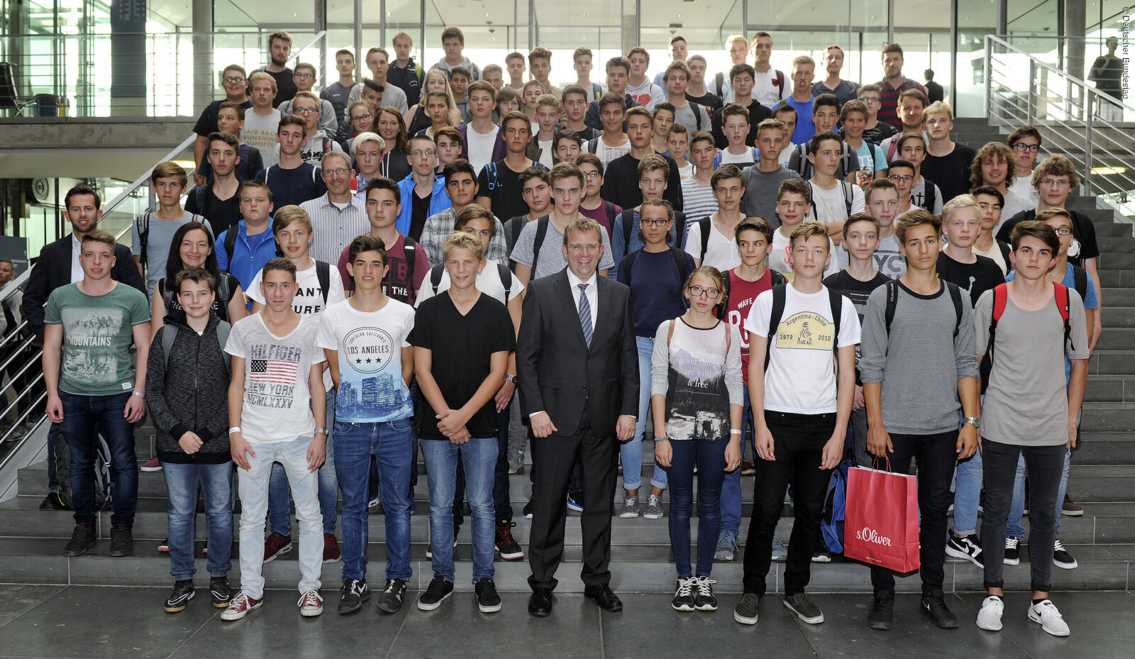 96 Schülerinnen und Schüler der Paul-Winter-Schule Neuburg besuchten ihren Heimatabgeordneten Dr. Reinhard Brandl in Berlin. Unter der Leitung von Klassenlehrer Florian Schöpfel traf die Gruppe im Paul-Löbe-Haus ein und hatte dort ein Gespräch mit Reinhard Brandl. Der Abgeordnete berichtete den Gästen von seinem zweigeteilten Leben, das sich zur einen Hälfte in Berlin und zur anderen Hälfte im Wahlkreis abspielt. Sehr interessant war es für die Schülerinnen und Schüler zu hören, mit welchen Aufgaben sich ein Abgeordneter beschäftigt. Nach einer sehr angeregten Diskussion stand noch die Besichtigung der Reichstagskuppel auf dem Programm. Dr. Reinhard Brandl verabschiedete die Gruppe herzlich und bedankte sich für den Besuch und das Interesse an seiner Arbeit.